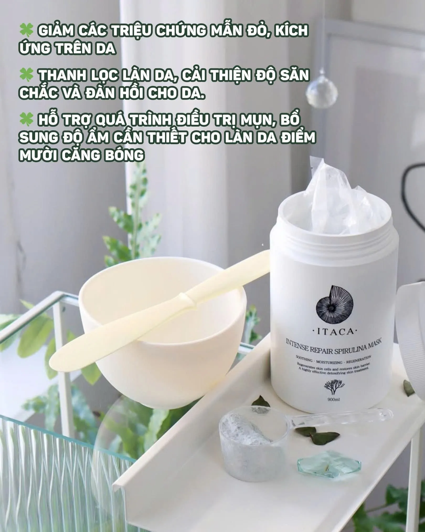 - Sản phẩm: Mặt nạ tảo xoắn ITACA Thanh lọc làn da, cải thiện độ săn chắc và đàn hồi cho da, cho làn da căng sáng, khoẻ mạnh 900ML